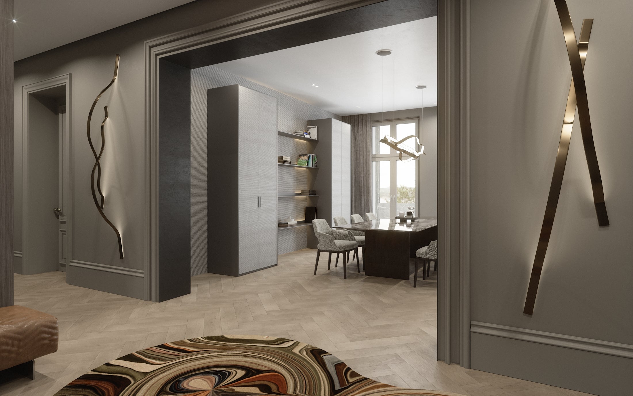 Our project aims to transform spaces within a historic old building into modern, sophisticated environments that blend elegance and functionality. We will create cohesive interiors reflecting luxury and comfort, honoring the building's heritage. Using high-quality materials, innovative lighting, and contemporary furnishings, we aim for a refined, inviting atmosphere throughout.